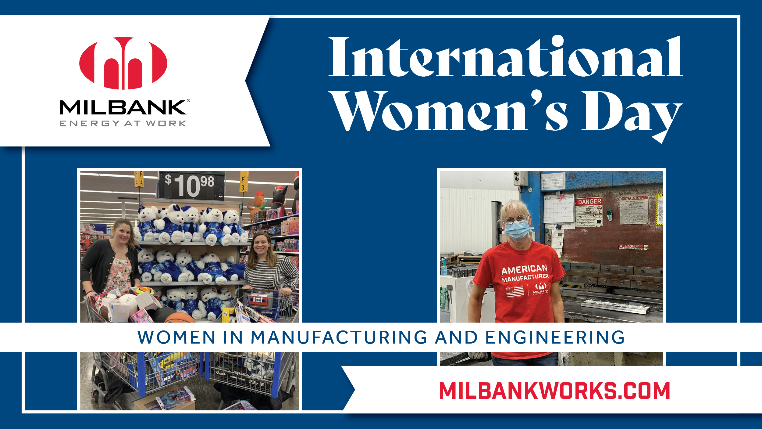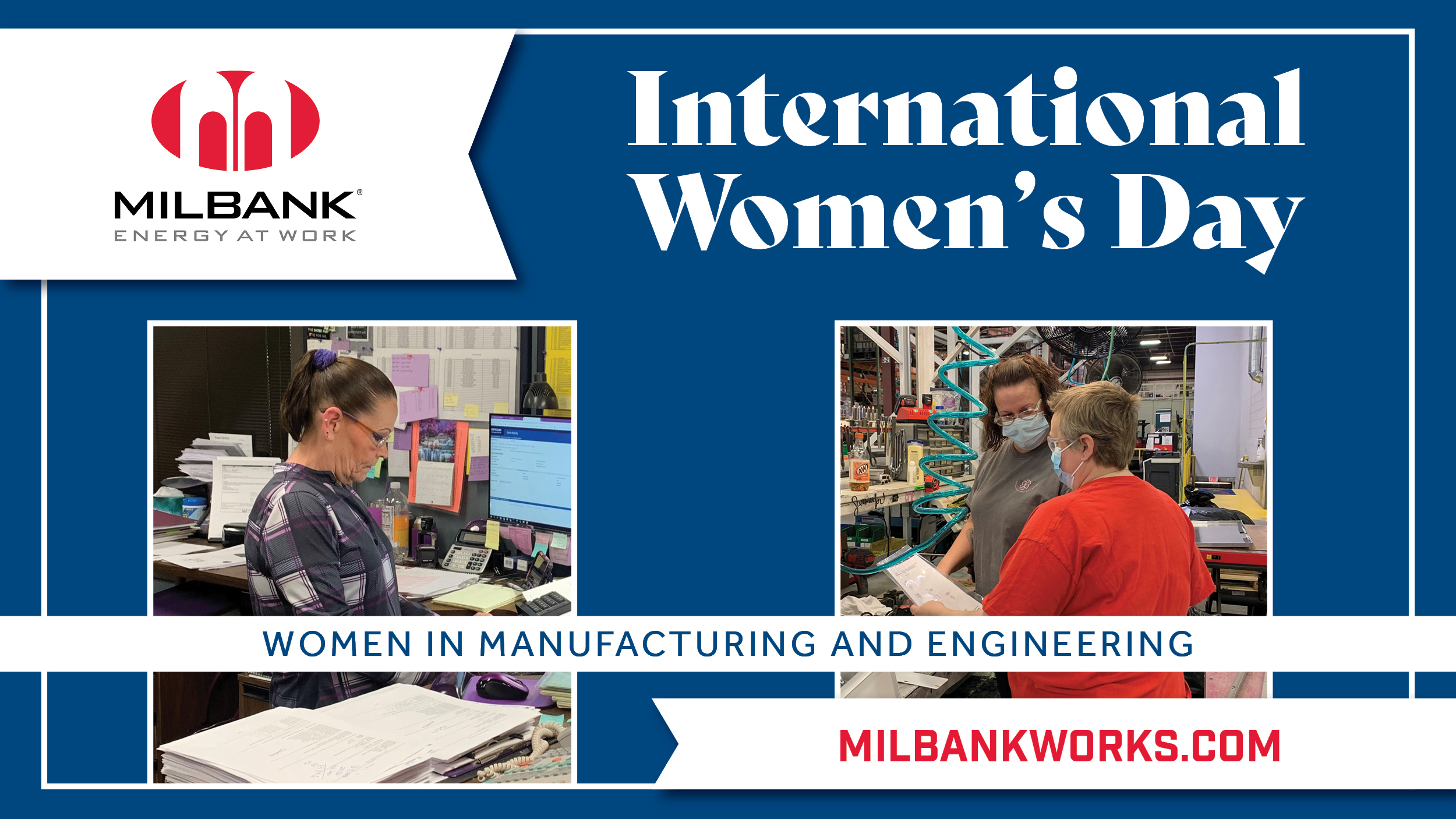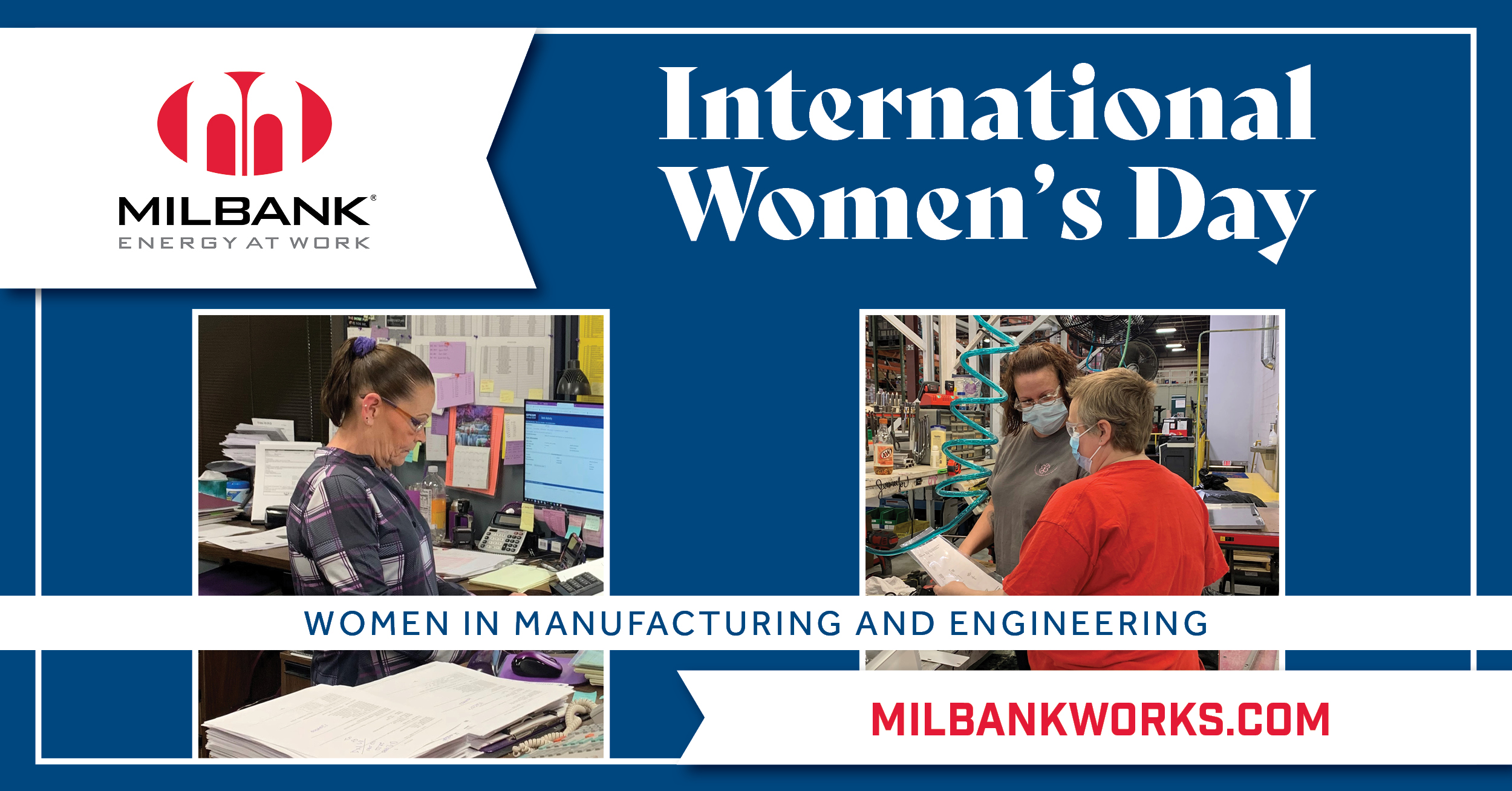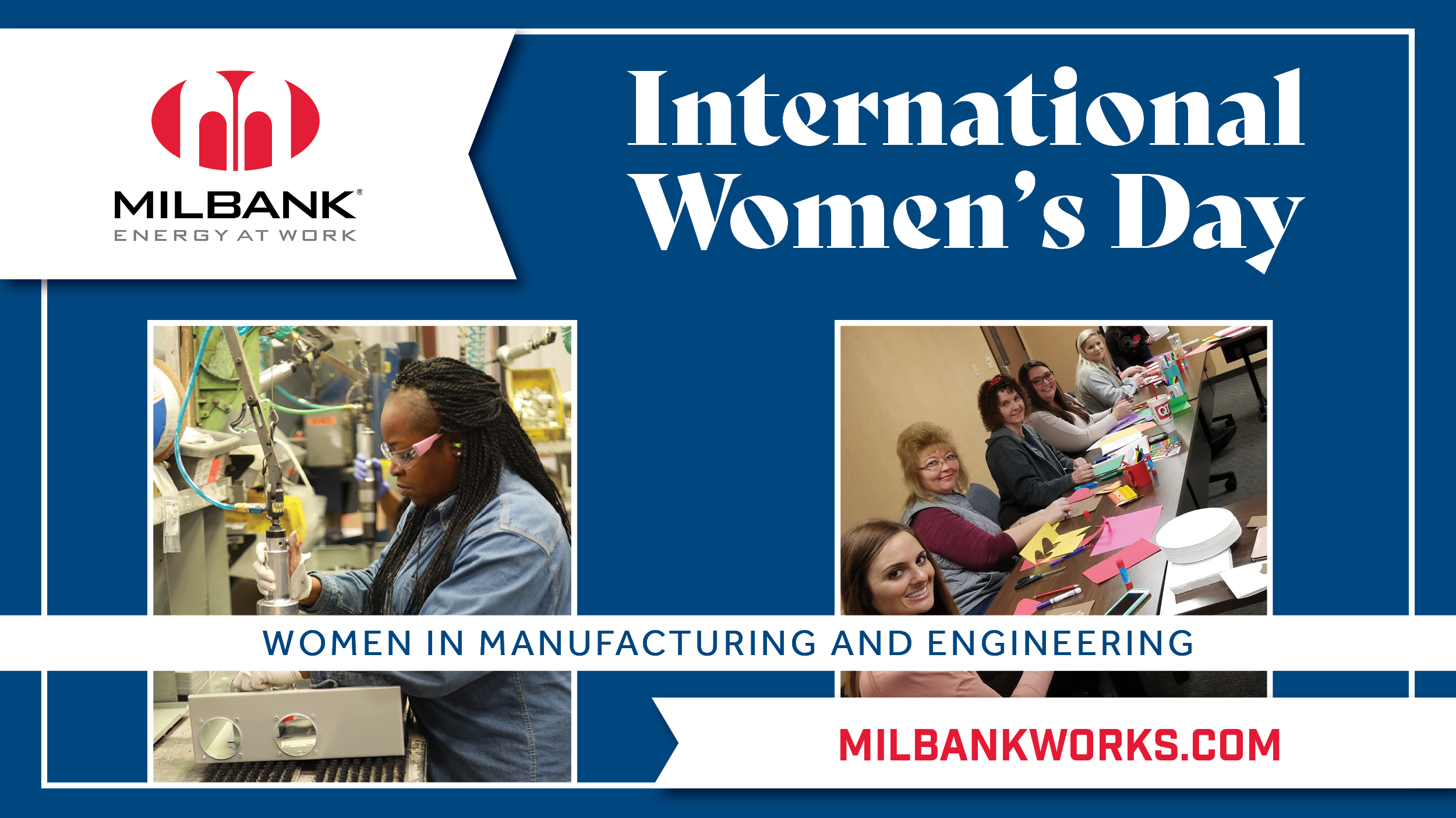 Branded social media graphics for Milbank Manufacturing celebrating International Women's Day 2021; created for Instagram, Facebook, LinkedIn, and Twitter