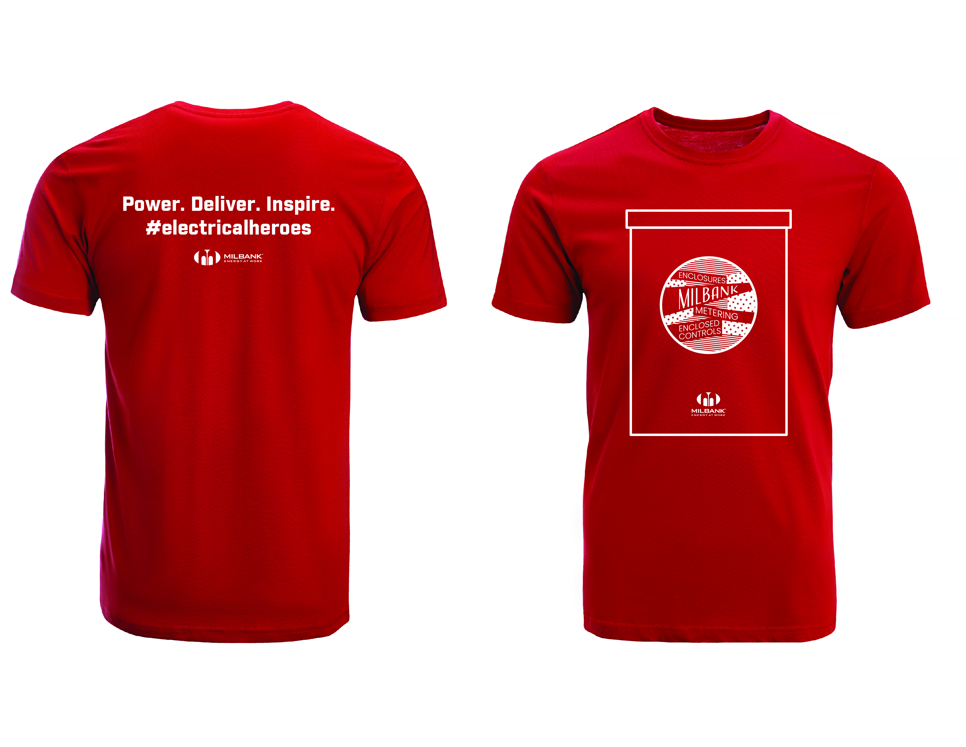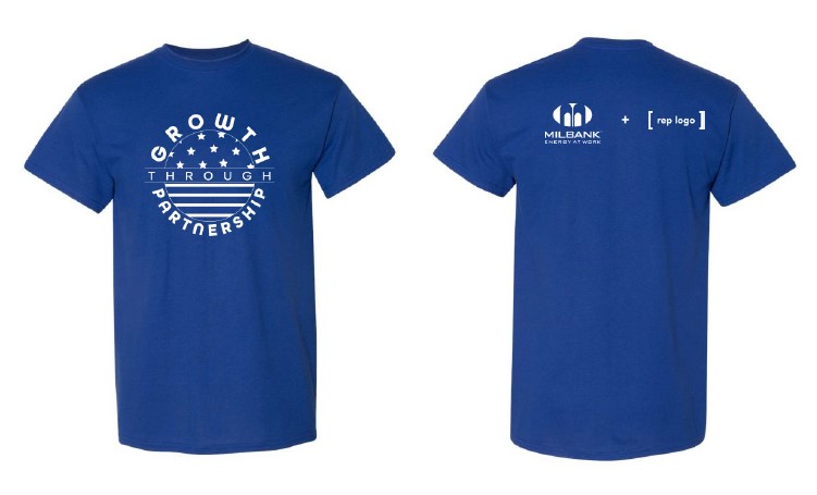 Milbank retro-style t-shirt designed for the President's Circle of Excellence; Milbank reps partnership t-shirt; Milbank marketplace meter socket t-shirt design for "American Manufacturer" campaign